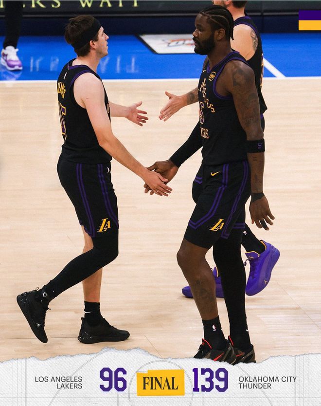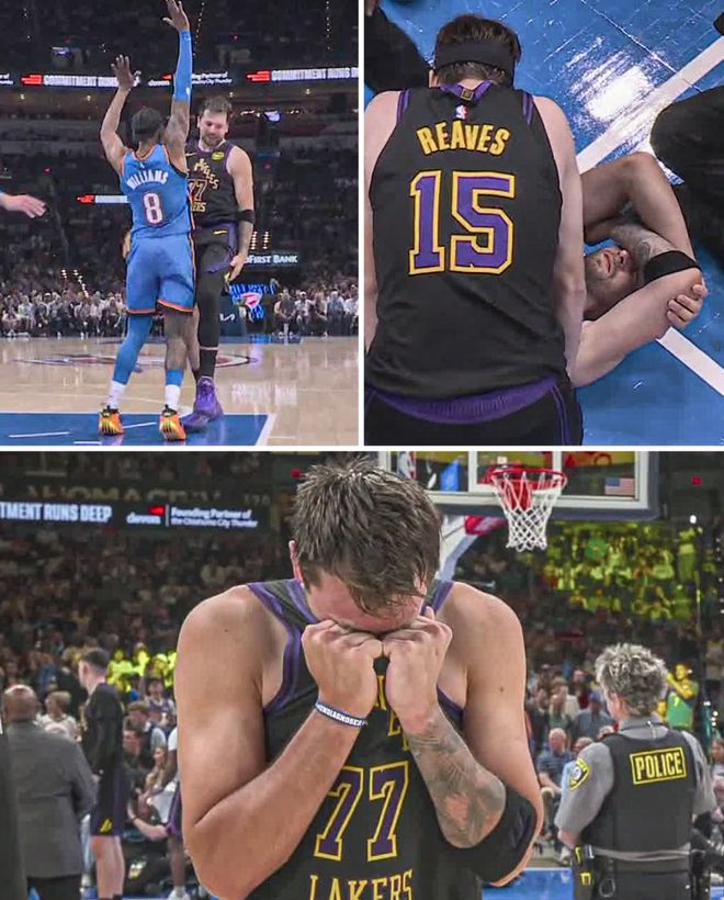 湖人队在东契奇退场后也更快的崩盘,最终湖人96-139惨败雷霆,这场比赛湖人替补席显得非常沮丧,勒布朗双眼无神,里夫斯在替补席一直低着头。东契奇则没有回到替补席他一直在更衣室治疗。